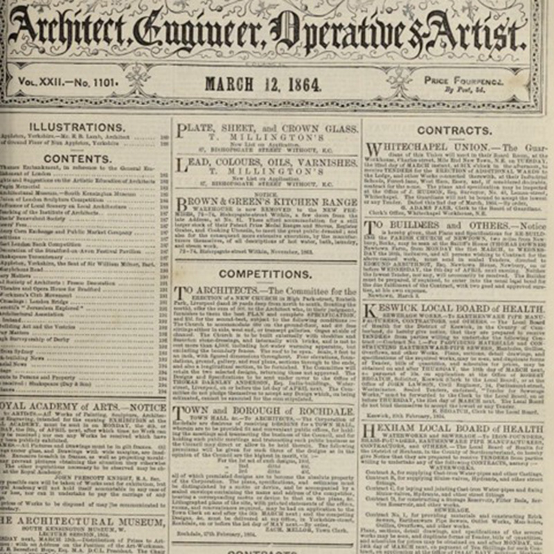 In January 1864 they advertised in newspapers and journals, offering a prizes of £100, £60 and £40 for the best designs. Twenty seven architects submitted plans.
