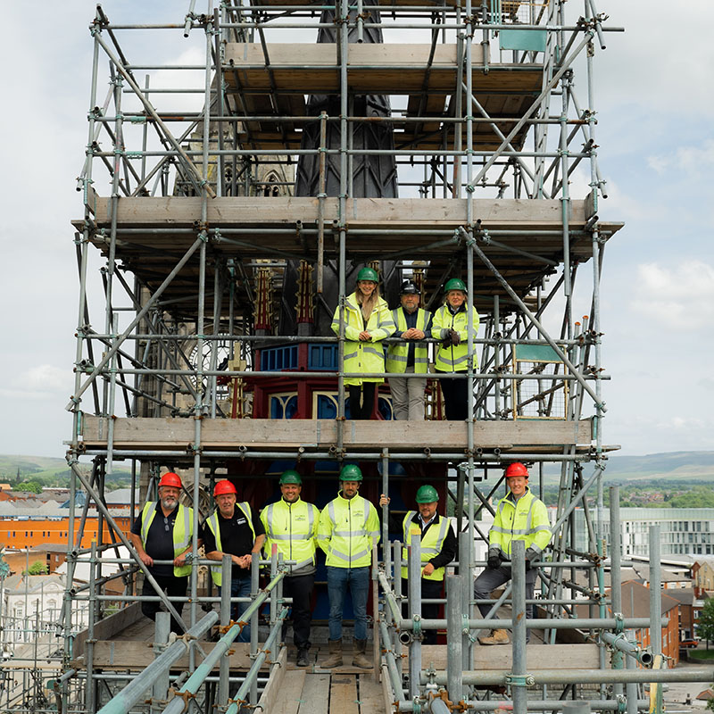 To deliver this project we took on a coordinating main contractor. They managed and coordinated specialist stained glass conservators, specialist painted surfaces conservators, specialist furniture, timber and tile conservators. We needed lift specialists, scaffolding specialists, lead workers, roofers, stone masons, temporary works engineers, painters, decorators, and hard landscaping specialists.