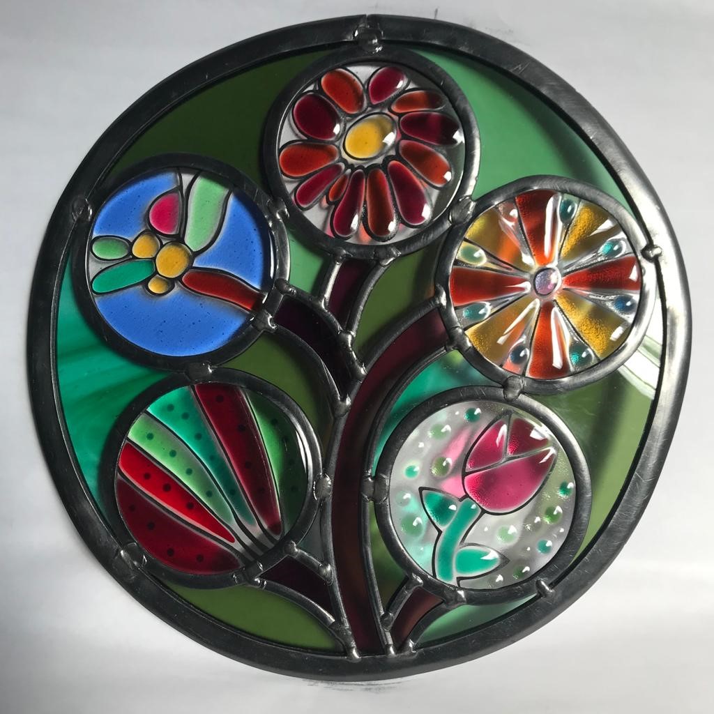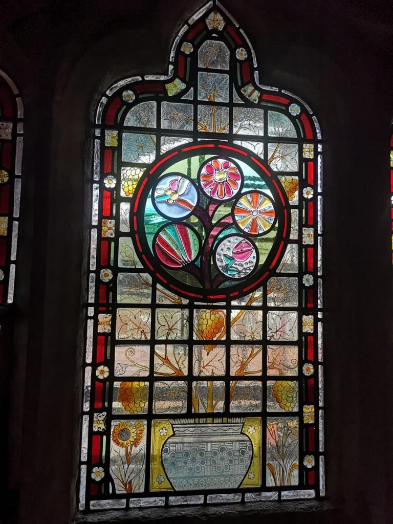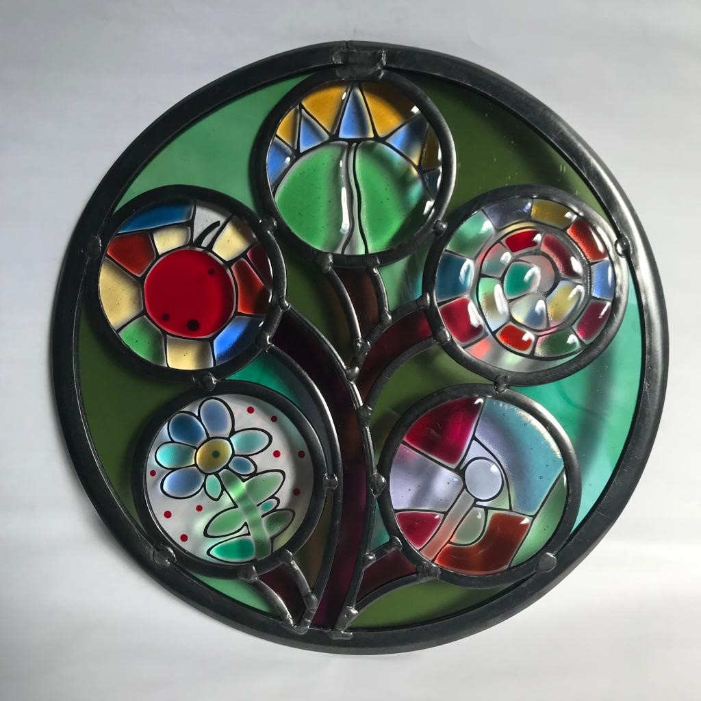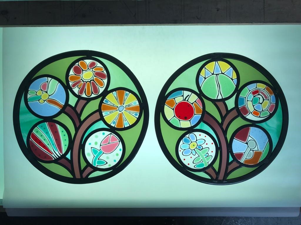 The children involved produced superb, bright, bold coloured drawings which have informed the design of the contemporary stained glass roundels.