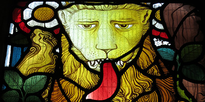You're halfway up the Grand Staircase! This is a good place to take in the view of the stained glass that's all around you.